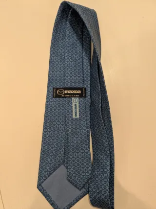 Elegante corbata de seda con un diseño de círculos entrelazados. - Material: Seda. - Color: Azul con patrón geométrico con el logo de Mazda - Presentada en caja con el logo de Mazda.