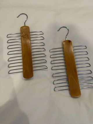 Organizador para colgar corbatas y cinturones. - Diseño con múltiples perchas. - Gancho para colgar en armario o barra.