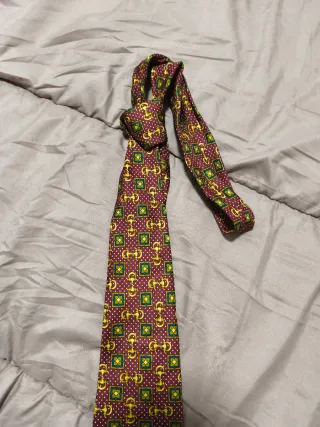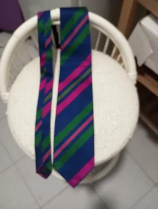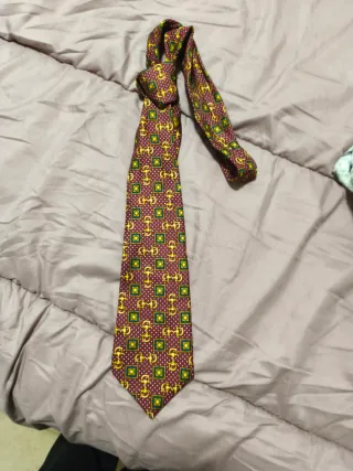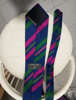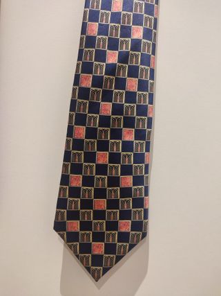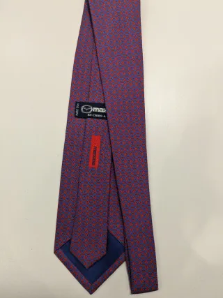 Elegante corbata de seda italiana, completamente nueva. - Diseño con estampado geométrico. - Combinación de colores vibrantes.