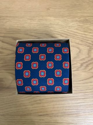 Corbata de seda estampada azul y roja