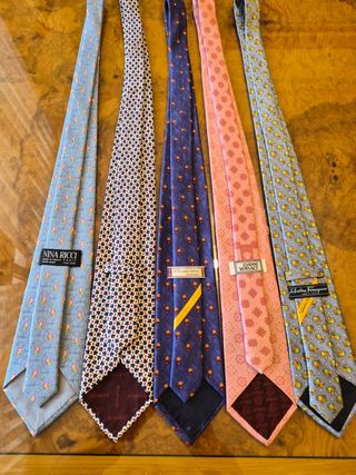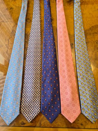Conjunto de cinco corbatas para hombre con diseños variados. Son de seda natural y tienen muy poco uso.