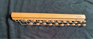 Práctico colgador para organizar corbatas. - Diseño con varillas y cuentas de madera. - Incluye soporte para colgar. - Incluye los tornillos para su colocación.