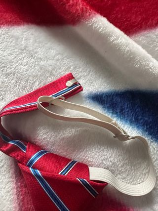 Corbata infantil de la marca Tizzas con un diseño de rayas rojas y azules. - Diseño a rayas. - Cierre ajustable. Tengo 2 unidades iguales y la misma en adulto.