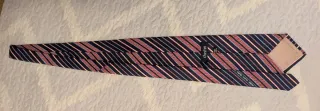Elegante corbata de seda natural con un diseño de líneas diagonales en tonos rosa y gris. Perfecta para añadir un toque de distinción a cualquier atuendo. - Material: 100% Seda natural. - Diseño: Patrón de líneas diagonales - Acabado: Brillante y suave al tacto.