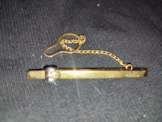 Elegante pisa corbatas con detalles en dorado y plateado. - Diseño clásico y sofisticado. - Cadena para mayor seguridad.