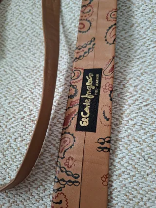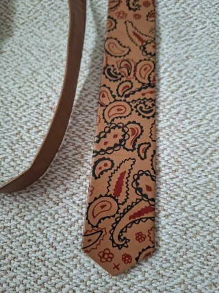 Corbata de cuero con un diseño llamativo. - Estampado paisley en tonos marrones y rojos. - Material de cuero.