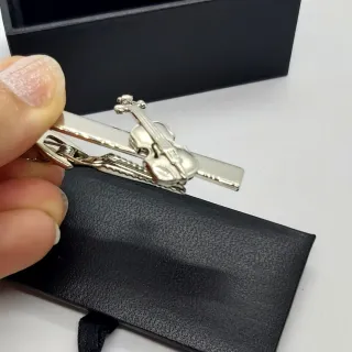 Elegante pinza de corbata con diseño de violín. - Detalle de violín en plata. - Pinza de corbata plateada. - incluye caja negra de polipiel. - Perfecta para regalo a musico. - Muchos más artículos de música, proviene de tienda de regalos.