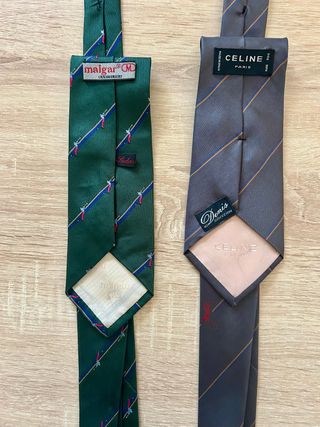 Elegante corbata de la marca Celine Paris. - Diseño a rayas en tonos grises y marrones. - Detalle del logo de Celine. - Fabricada en España. Corbata Golf Celine + 1 de regalo Marcas Celine + Malgar. Buenísima calidad. Ideal para aficionados al golf. 😉 Eran de mi abuelo. Tengo más modelos en mi perfil