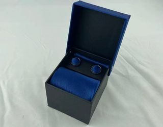 Corbata azul marino + gemelos a juego con caja
