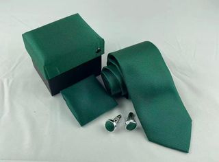 Corbata verde esmeralda + gemelos a juego con e