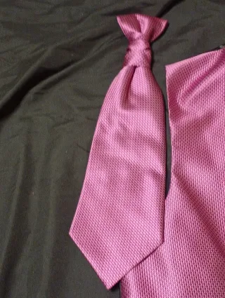 Conjunto de chaleco y corbata a juego, ideal para trajes. - Chaleco con cuello en V y cierre de botones. Se ajusta detrás por dentro, cómo se ve en la foto. - Regalo corbata a juego ( le falta la cinta ). - Tejido con textura. - Una vez usado.