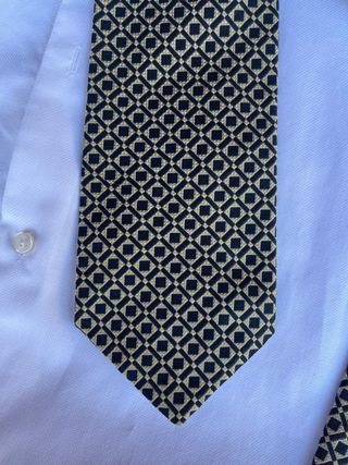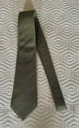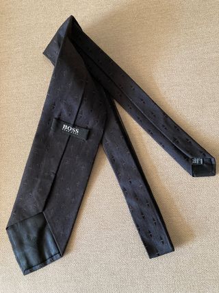 Corbata de seda (ver foto 3) de Hugo Boss. Está hecha en Italia. La parte ancha inferior de la pala mide 6 cm. Está en perfectas condiciones de conservación.
