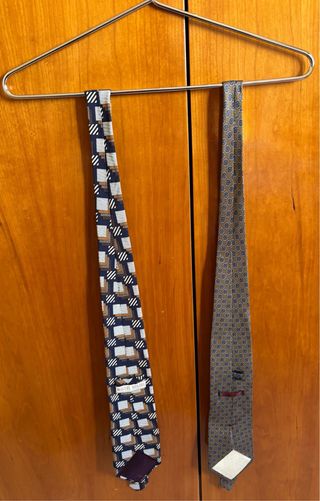 Corbata de seda con un diseño clásico y sofisticado. - Tejido 100% seda natural. - Tacto suave y caída fluida. - Patrón discreto. - Empaquetada, a estrenar. 2 modelos disponibles, el precio es por unidad.
