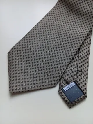 Elegante corbata de seda natural con un diseño de cuadros. - Material: 100% seda natural. - Diseño: Cuadros en tonos azules y beige. - Estado: Nueva.