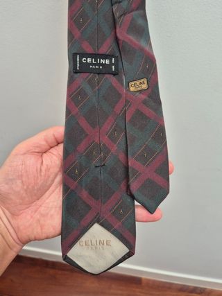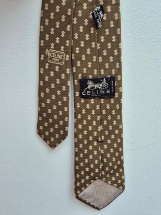 CORBATA CELINE (MARCA DE LUJO) 100% PURA SEDA, FABRICADA EN ESPAÑA COLOR VERDE CON EL LOGOTIPO DE LA MARCA EN BEIGE PRECIO EN TIENDA: 210 eur USADA SOLO EN UN EVENTO REALIZO ENVÍOS O ENTREGA EN MANO