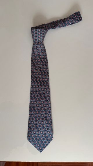 Corbata original Hermès Paris, 100% seda, hecha a mano. Presenta desgaste visible en la parte estrecha y costuras (ver fotos), por eso el precio.