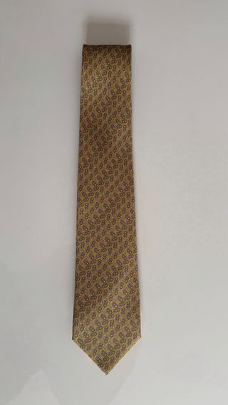 Elegante corbata de seda de la reconocida marca Hermes, original, con estampado de elefantes, palmeras y flores. Inlcuye su caja original. Medidas: Largo: 1.40 cms. Ancho: 8.5 cms. Ancho: 4.5 cms. - Diseño con motivos. - Base en tono amarillo. - Detalles en color morado. Soy amante de la moda sostenible, en mi perfil encontrarás ropa y complementos de reconocidas marcas, dale una oportunidad para que sigan brillando. TOUS, GUESS, HERMES, Carolina Herrera, Michael Kors y más...Vintage...
