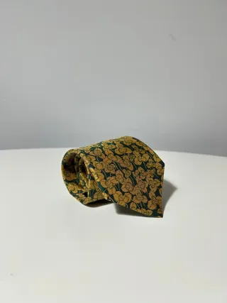 Elegante corbata con un diseño floral. - Patrón de flores doradas sobre fondo verde. - Tejido de calidad.