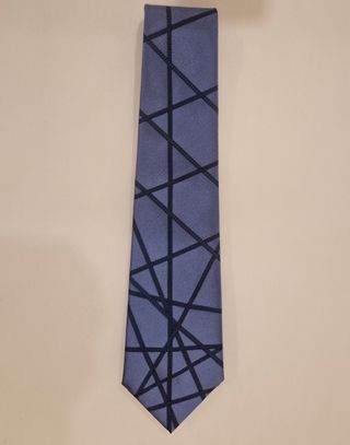 Elegante corbata de seda con un diseño de rombos en tonos azules y grises. - Material: Seda. - Diseño: Rombos. - Color: Azul y gris.