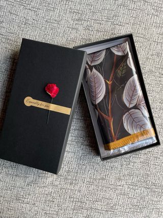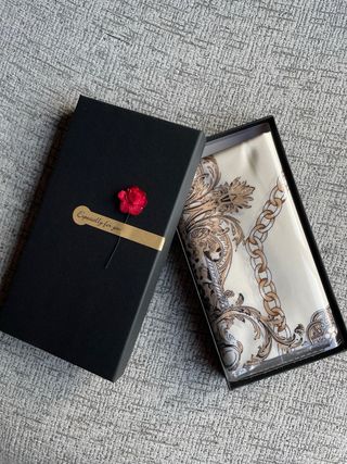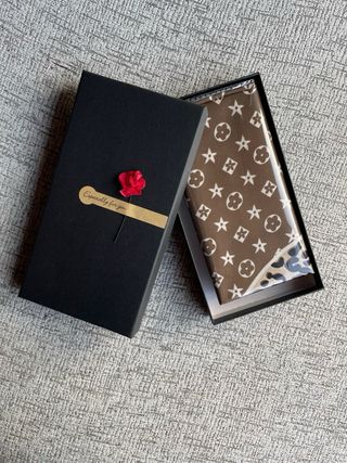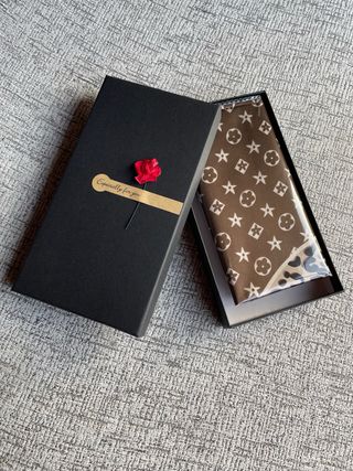 Pañuelo elegante para mujer con acabado suave tipo seda. Incluye caja regalo premium, ideal para sorprender en cumpleaños, aniversario o detalle especial. ✨ Modelo único (solo 1 unidad por diseño) ✨ Diseño exclusivo ✨ Presentación lista para regalar Dispongo de más de 140 modelos diferentes disponibles. Entra a mi perfil y elige el que más te gusta antes de que te lo lleven! 📩 Pregunta sin compromiso 😊 🚚 Entrega en mano o envío. ⸻ 🎁 Servicio de envoltorio disponible (+2€) Lo preparo listo para regalar con papel elegante y lazo decorativo. Perfecto si quieres quedar bien sin preocuparte por nada. Ref:013