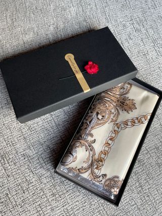Pañuelo elegante para mujer con acabado suave tipo seda. Incluye caja regalo premium, ideal para sorprender en cumpleaños, aniversario o detalle especial. ✨ Modelo único (solo 1 unidad por diseño) ✨ Diseño exclusivo ✨ Presentación lista para regalar Dispongo de más de 140 modelos diferentes disponibles. Entra a mi perfil y elige el que más te gusta antes de que te lo lleven! 📩 Pregunta sin compromiso 😊 🚚 Entrega en mano o envío. ⸻ 🎁 Servicio de envoltorio disponible (+2€) Lo preparo listo para regalar con papel elegante y lazo decorativo. Perfecto si quieres quedar bien sin preocuparte por nada. Ref:017.