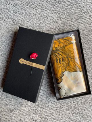 Pañuelo elegante para mujer con acabado suave tipo seda. Incluye caja regalo premium, ideal para sorprender en cumpleaños, aniversario o detalle especial. ✨ Modelo único (solo 1 unidad por diseño) ✨ Diseño exclusivo ✨ Presentación lista para regalar Dispongo de más de 140 modelos diferentes disponibles. Entra a mi perfil y elige el que más te gusta antes de que te lo lleven! 📩 Pregunta sin compromiso 😊 🚚 Entrega en mano o envío. ⸻ 🎁 Servicio de envoltorio disponible (+2€) Lo preparo listo para regalar con papel elegante y lazo decorativo. Perfecto si quieres quedar bien sin preocuparte por nada. Ref:015.