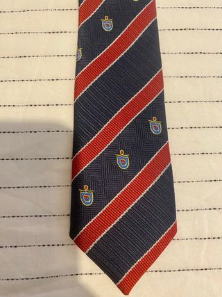 CORBATA DE NIÑO CON NUDO. ESTAMPADO DE ESCUDOS. ESTÁ IMPECABLE. UNA SOLA PUESTA. Mide (desde el nudo 33,5 cm); y la pala (por la parte más ancha) 6 cm. Para niño de 8-9 años. VER SIN COMPROMISO. NO HAGO ENVIOS. GRACIAS!