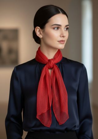 Pañuelo de cuello fino y transparente. - Diseño elegante y ligero. - Color rojo vibrante. Mide 63 cm