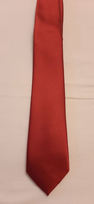 Corbata de color rojo, en perfecto estado. - Tejido de textura fina. - Diseño clásico y versátil. - Ideal para ocasiones formales e informales.