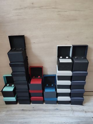 estuche de corbata, gemelos y pañuelo NUEVOS 8€ CADA ESTUCHE, SI QUIERES VARIOS HAGO PRECIO Celeste 1 Roja 2 Negro 6 Azul 2 Gris 5 Azul oscuro 5