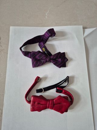 Conjunto de dos elegantes pajaritas, una morada y otra roja granate. Precio de las dos pajaritas, 10 Euros. Cualquier duda, preguntar.