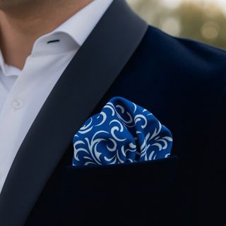 Añade un toque de estilo a tu outfit con este elegante pañuelo de bolsillo nuevo con cuatro estampados coordinados en tonos azul oscuro. Modelo Esmeralda de la primera colección BØ 🧵Fabricado en suave poliéster, tacto sedoso. 📏Tamaño: 30 x 30 cm 🆕NUEVO a estrenar 🚚Se envía en menos de 24h #pañuelodebolsillo #accesorioshombre #trajehombre #boda #hombre