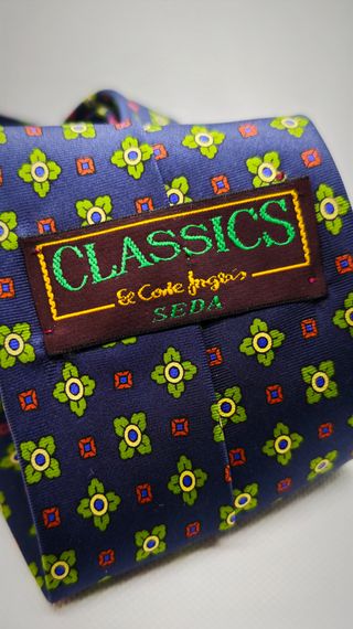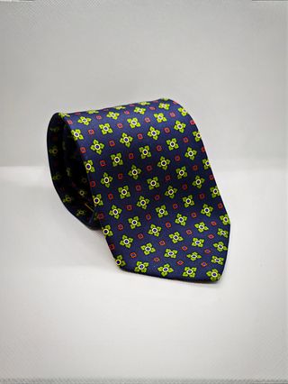 Elegante corbata con un diseño clásico y llamativo. - Base azul marino. - Estampado de flores verdes y detalles rojos y azules. - Patrón geométrico sutil. Hago envíos por Wallpop o recoger en Alcorcón No hago cambios Contacto solo por el chat