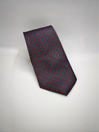 Elegante corbata con un diseño clásico y llamativo. - Base de color gris oscuro. - Pequeños estampados florales en color rojo. - Patrón repetido a lo largo de toda la corbata. Hago envíos por Wallpop o recoger en Alcorcón No hago cambios Contacto solo por el chat