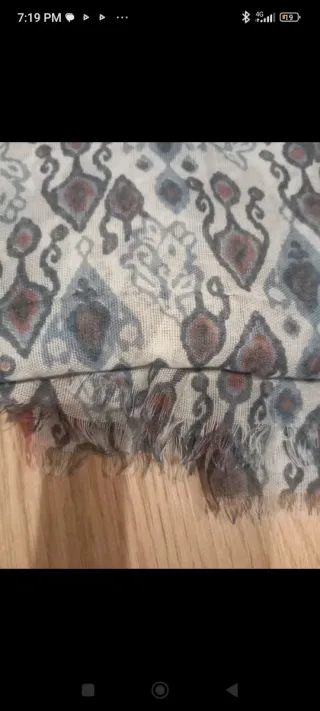 Pañuelo con un bonito estampado. - Diseño con rombos y motivos florales. - Flecos en los extremos.
