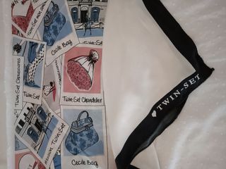 Preciosa pañuelo de seda, suave y vistosa. Ideal para cualquier ocasión. - Diseño con cadenas y detalles dorados. - Colores naranja y multicolor. - Perfecto estado.