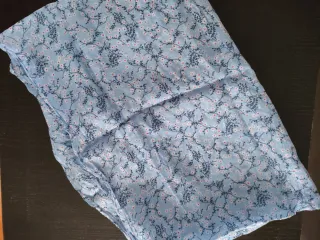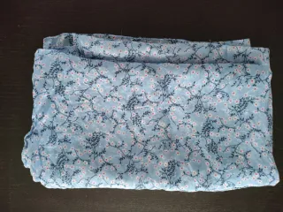 Elegante pañuelo de seda con un delicado estampado floral. - Diseño con flores blancas y detalles en rosa. - Base en tono azul claro. - Tacto suave y ligero.