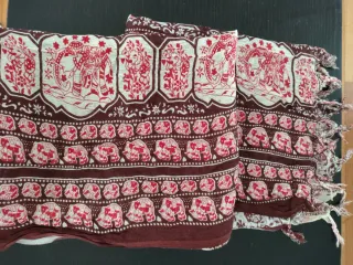 Pañuelo de algodón con un bonito estampado de elefantes en tonos rojos y marrones. Sus medidas son 160 por 120 cm. - Diseño con elefantes. - Medidas: 160 x 120 cm. - Material: Algodón.