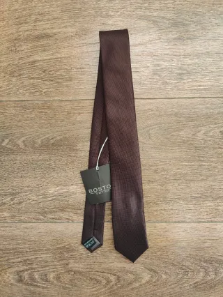Corbata de la marca Boston en un tono marrón-berenjena. Perfecta para complementar tu atuendo. - Largo 146 cm - Diseño liso con microtextura. - Etiqueta de la marca visible.