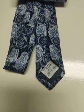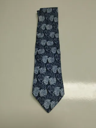 Elegante corbata de seda con un estampado floral en tonos azules y blancos. Perfecta para añadir un toque de distinción a cualquier atuendo. - Material: 100% seda. - Diseño: Estampado floral. - Color: Azul y blanco.