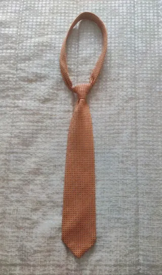 Elegante corbata con un diseño de microestampado. - Color: dorado y naranja. - Tejido con textura sutil.