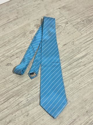Corbata azul con rayas blancas