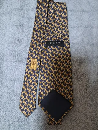 Corbata Seda Gucci Azul y Dorado