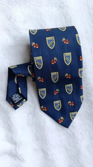 Elegante corbata de seda de la marca Nuccio d'ottavio sarto. Presenta un diseño clásico con detalles en azul y dorado. - Confeccionada en seda. - Largo aproximado: 145 cm (verificar medidas en la foto) - En perfecto estado.