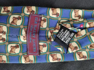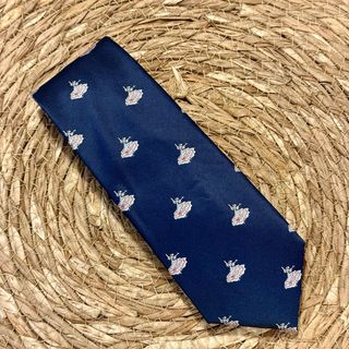 Excelente corbata de la marca Loewe, en seda natural 100% de extraordinaria calidad y finura. Color azul marino con detalles de ardillas en color rojo, rosa, y cerceta. Impecable. Estado inmaculado, 10/10.
