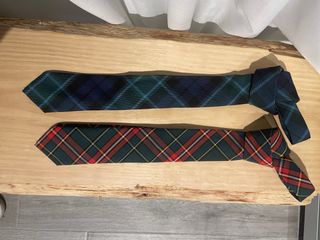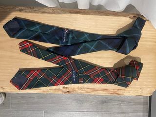 Conjunto de dos corbatas con diseño de cuadros silbon - Una corbata presenta tonos azules y verdes. - La otra corbata combina verde, rojo y amarillo.