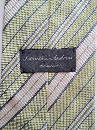 Elegante corbata de seda con un diseño de rayas. - Material: Seda - Diseño: Rayas diagonales - Colores: Verde y blanco