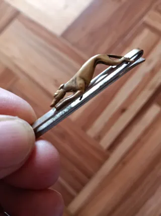 Elegante pasador de corbata con diseño de galgo. - Acabado en tono dorado y plateado. - Diseño clásico y atemporal.