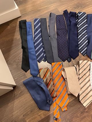 Conjunto de dieciséis corbatas de diferentes marcas y diseños. - Corbatas de seda con estampados variados. - Incluye corbatas de Hubert y Massimo Dutti boss , marco pascali y mucho más - Diseños elegantes en tonos negros y marrone y variados *16 CORBATAS DE DIFERENTES MARCAS*👔 1 CORBATA : 10€ 5 CORBATAS : 35€ PACK DE 16 CORBATAS: 120€