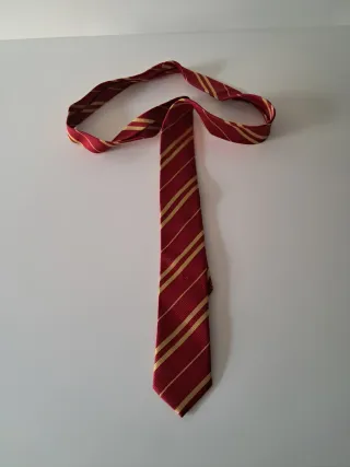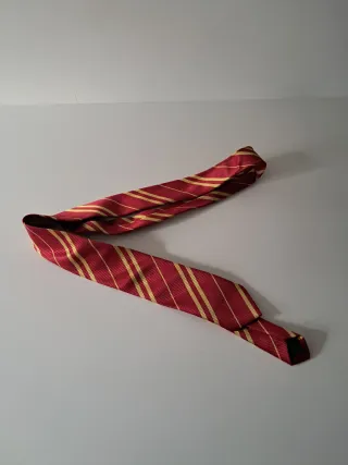 Corbata con el diseño de las rayas rojas y doradas, inspirada en el mundo de Harry Potter. - Diseño de rayas diagonales. - Tejido satinado.